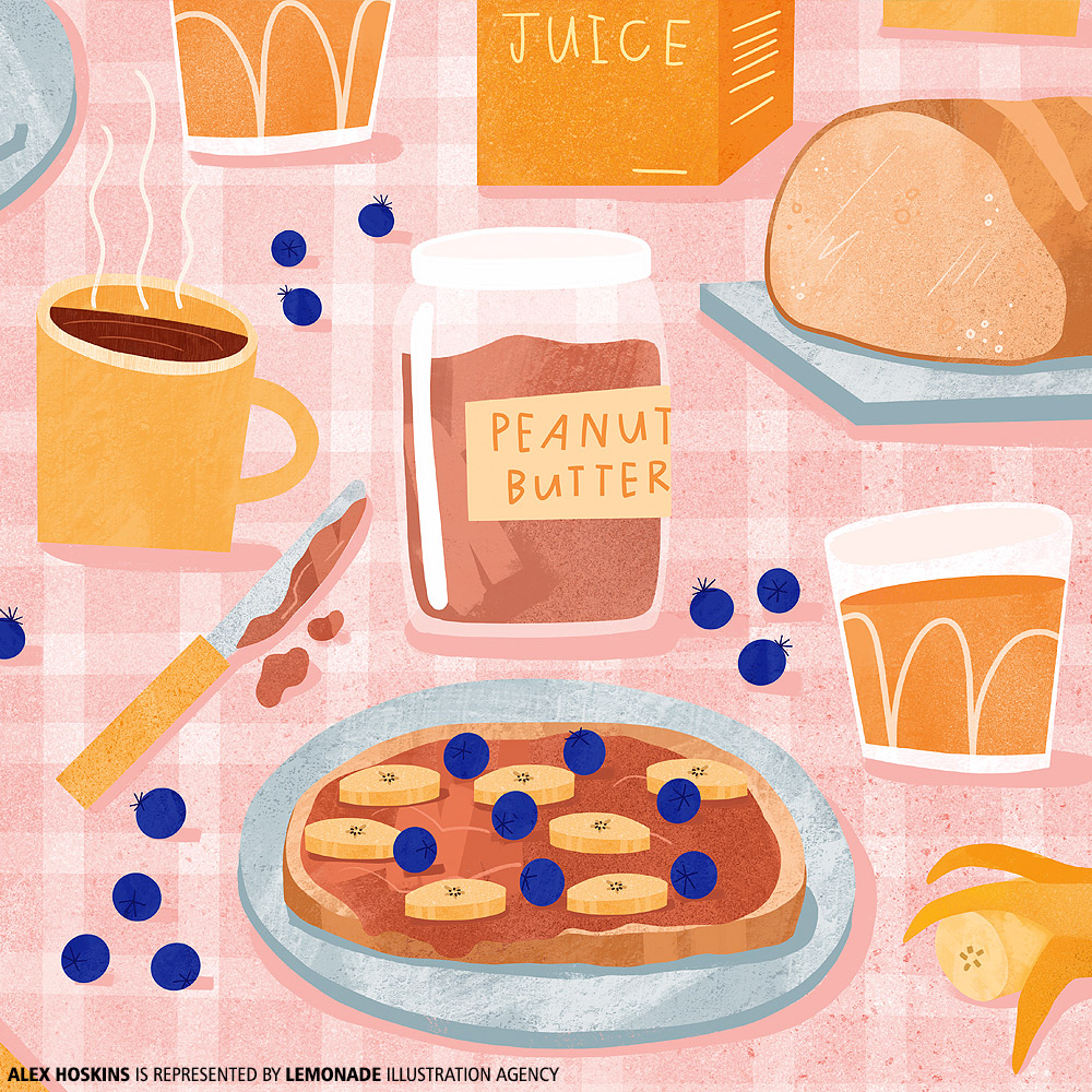 Presenting Peanut Butter excitingly is not easy but Lemonade’s Alex Hoskins does it effortlessly and with a colourful panache! Alex’s naive illustration style and textures really gives Food and Product commissions that added USP clients and Brands are always looking for! See much more of her fabulous food illustration on our website.