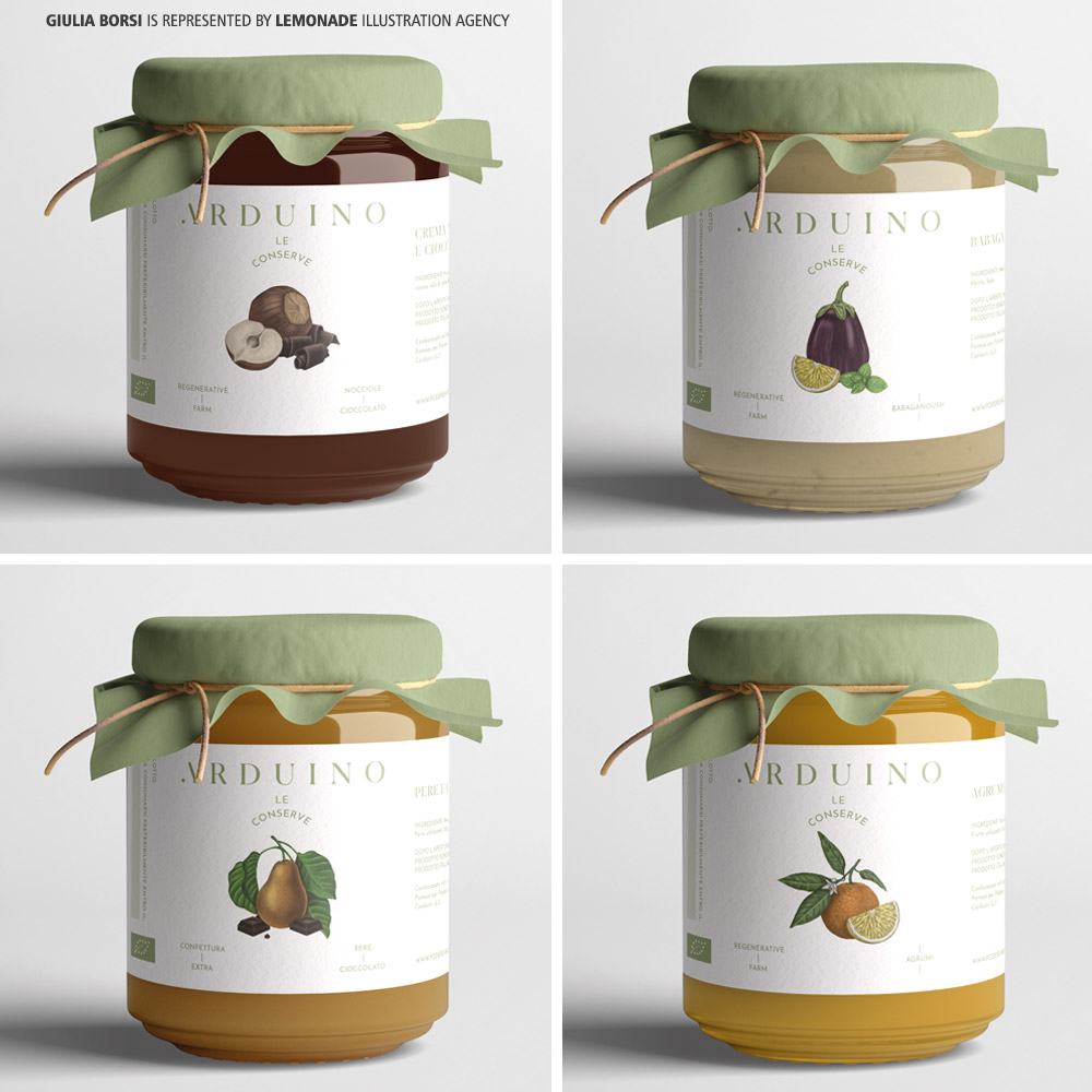 The beautiful work of Giulia Borsi adds sophistication to any Brand Packaging. As you can see here, Giulia’s delicate style is still very effective for Food and Beverage Packaging, especially Organic producers like Arduino. We love the opportunity of providing such diverse work to our illustrators, it makes life exciting! Take a look at Giulia’s work on our website to see much more.