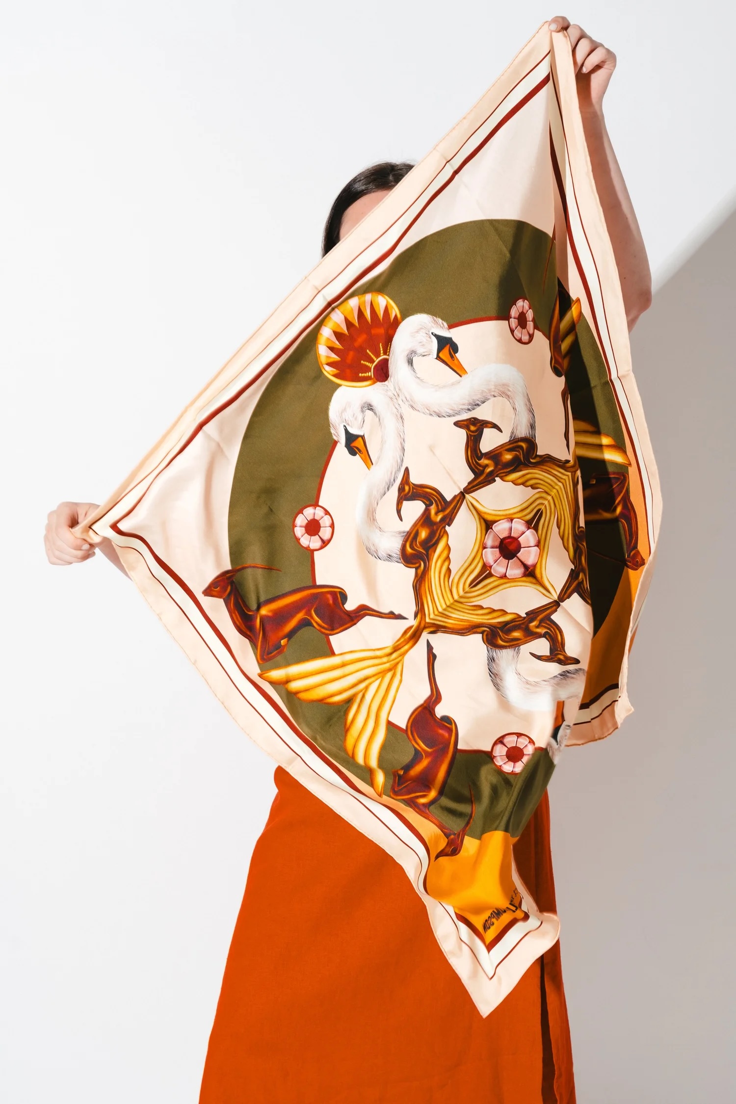 Glade evokes quiet forest light and shaded clearings. While details on the motif are more subtle than the other scarves, its soft color palette and thoughtful composition make it ideal for someone who prefers understated elegance. Artifact. -