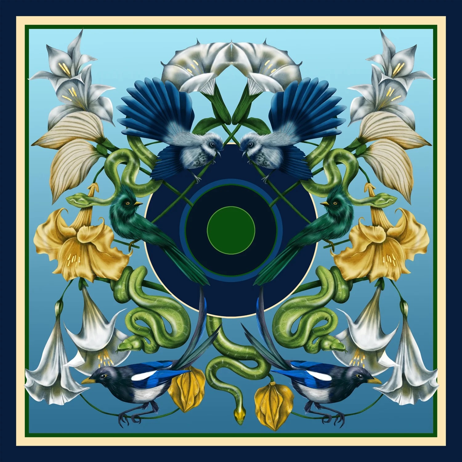 New Zealand–born and Melbourne-based, Kelly Thompson is known for her expressive illustrations that blend delicate hand-drawn lines with bold digital color. Inspired by flora, fauna, and beauty, her work brings a feminine, nature-rich energy that translates seamlessly into this silk scarf collection.