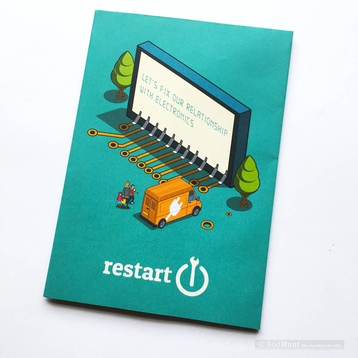 The Restart Project is a people powered platform for change, helping demand emerge for more sustainable, better electronics. They commissioned Rod Hunt to illustrate an ‘Electronics Utopia’ to better explain their vision of a more sustainable relationship with electronics.