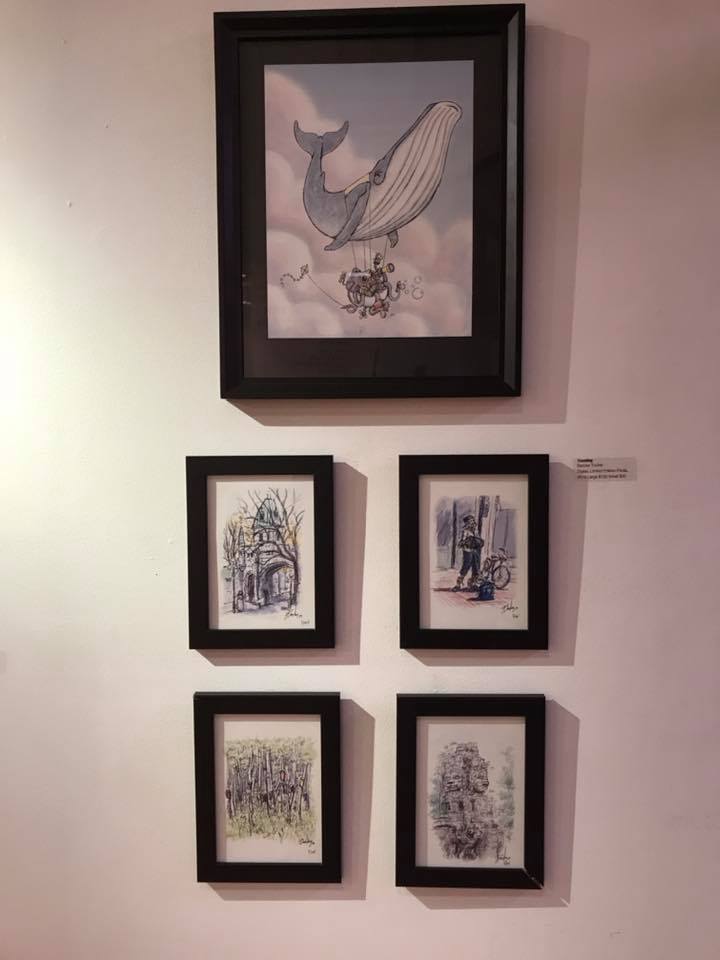 It was a wonderful opening night at the faculty art exhibit in the Quimby Gallery this evening. This was an opportunity to exhibit my whale illustration and a number of my recent sketches. What was even better was the amount of students and faculty that showed up.