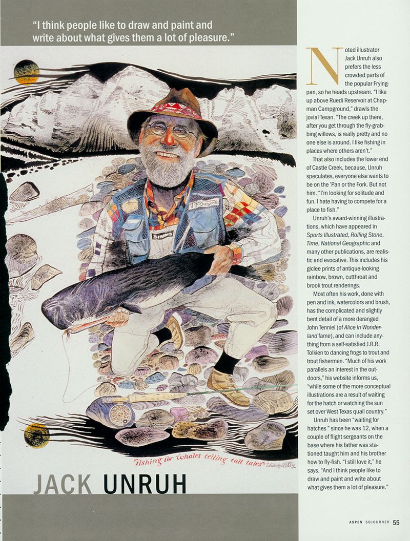 Jack Unruh was one in a million. He was prolific, diverse, unique, and a sense of humor that could biting at times. He was a fantastic craftsman with a great sense of design a knack for brilliant use of negative space. We will not see anyone quite like Jack again, but I am grateful to have been a witness to his genius and to have rubbed shoulders at least a few times with this master of the pen. You will be missed Jack but take it easy on those trout in heaven. You’ve got eternity to wet that line.