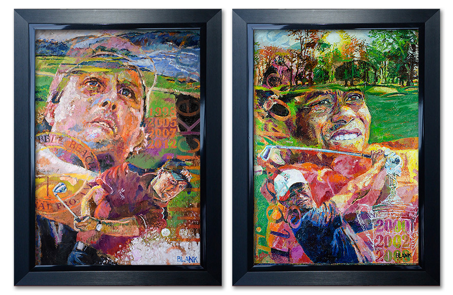 The Masters Golf Championship is just a week away. Celebrate this golf mecca with a twosome of past Masters champions. Phil Mickelson and Tiger Woods. These two remarqued and artist enhanced original giclées are handsomely framed in matt and gloss black frames, perfect for an office, den or man-cave. Now a special offer is available at Jerry-Blank-Art.myshopify.com. Get yours today.