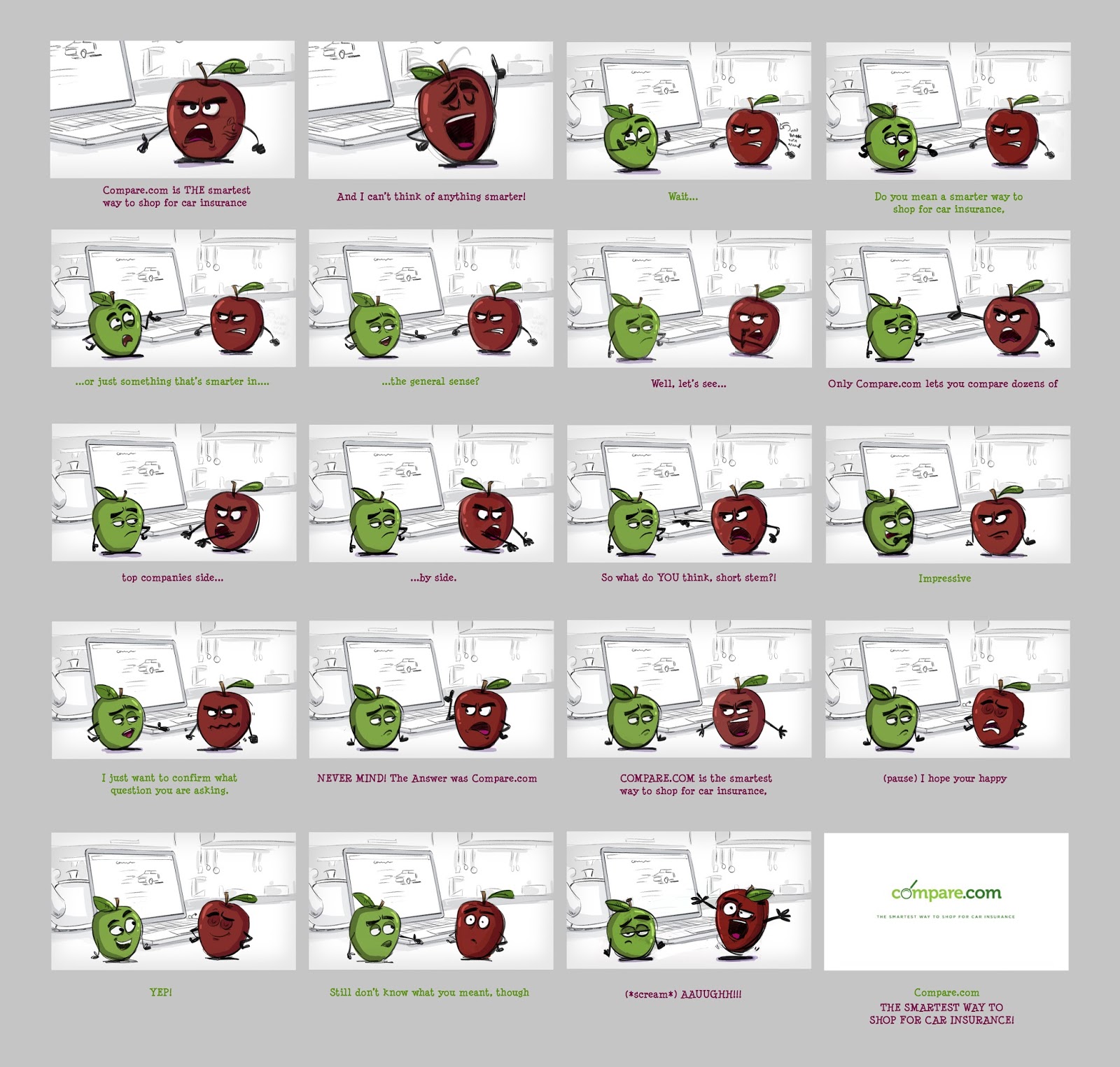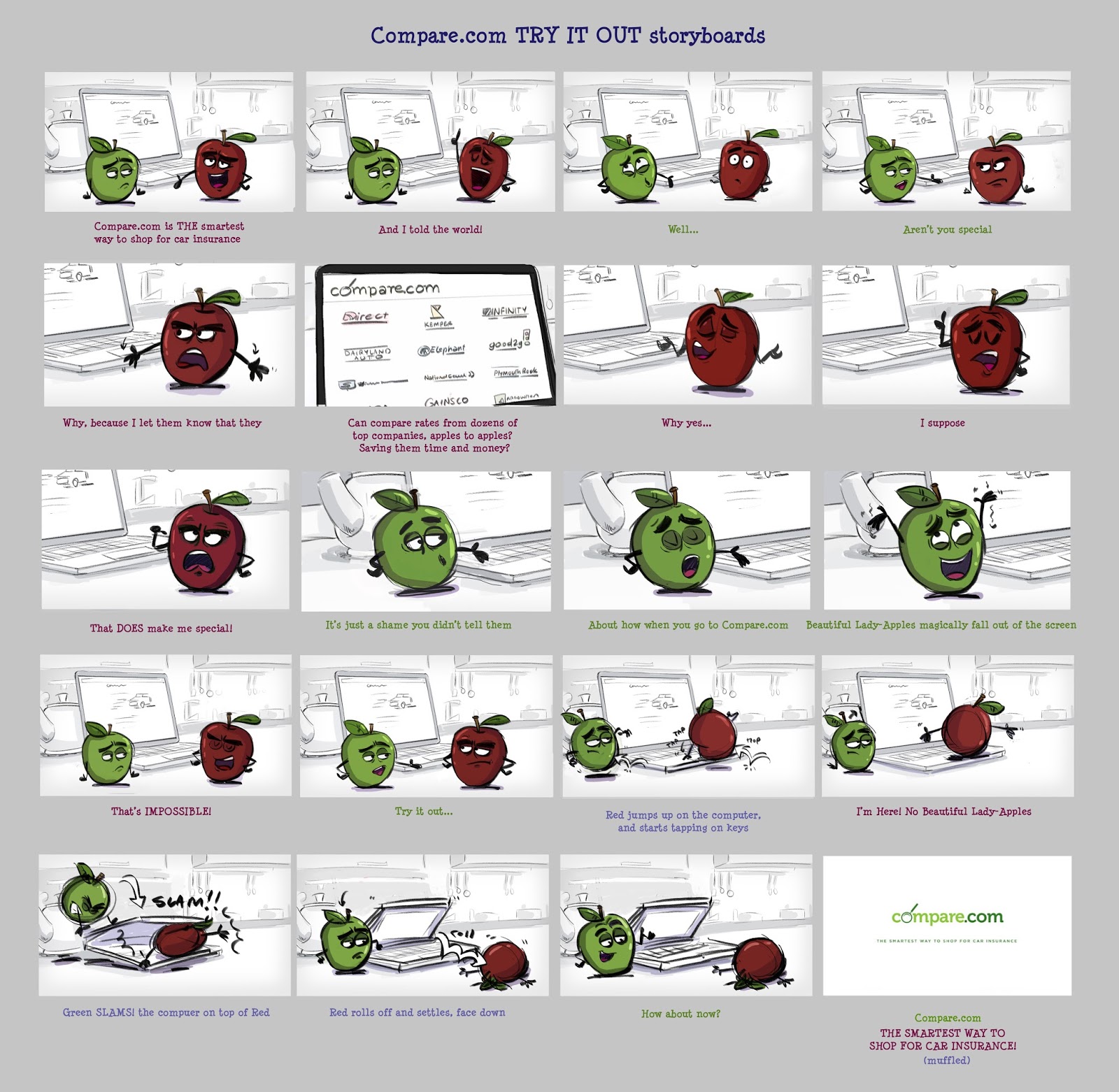 Worked on a new national spot 3 x campaign for Red Tettemer Agency in Philly; involving a set of “spokesapples” for Compare.com (get it, apples to apples?!;)